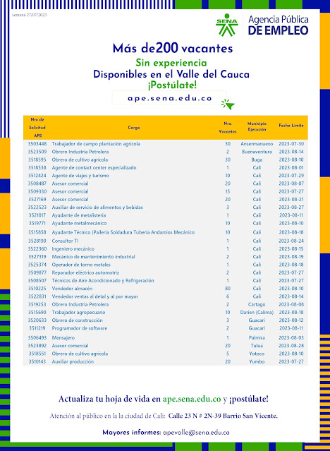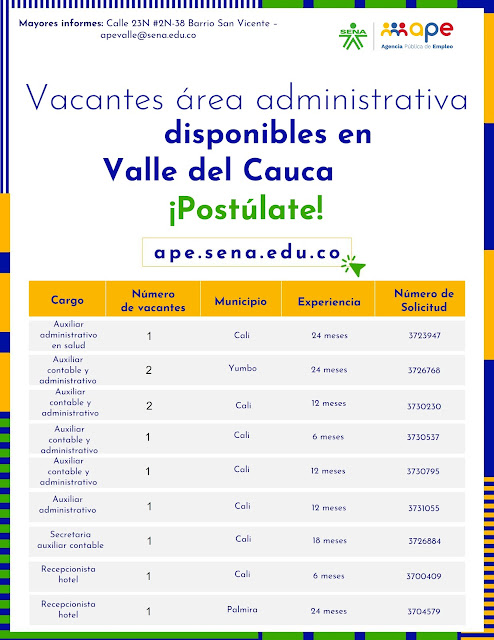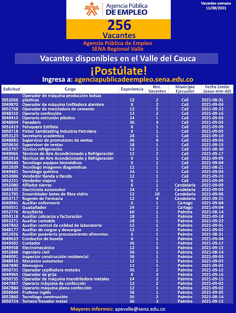 Estamos recibiendo las hojas de vida a través del correo apevalle@sena.edu.co